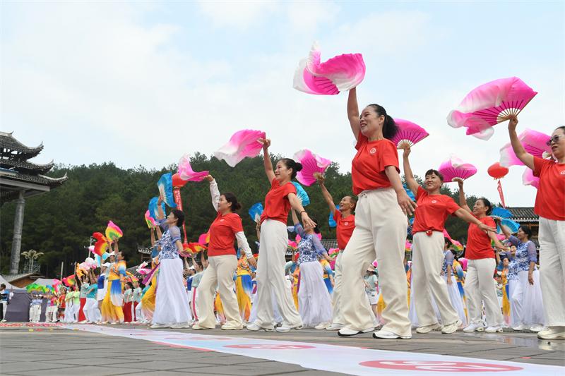 隨后,《黃河源頭》《手杖操》《貴客來》《永遠(yuǎn)一家人》《苗鄉(xiāng)侗寨請(qǐng)您來》等精彩廣場(chǎng)舞接連上演,來自全省各市州的廣場(chǎng)舞愛好者踏著動(dòng)感的旋律,用整齊劃一的動(dòng)作、飽滿的精神狀態(tài),為觀眾呈現(xiàn)了一場(chǎng)活力十足的“舞林盛宴”。