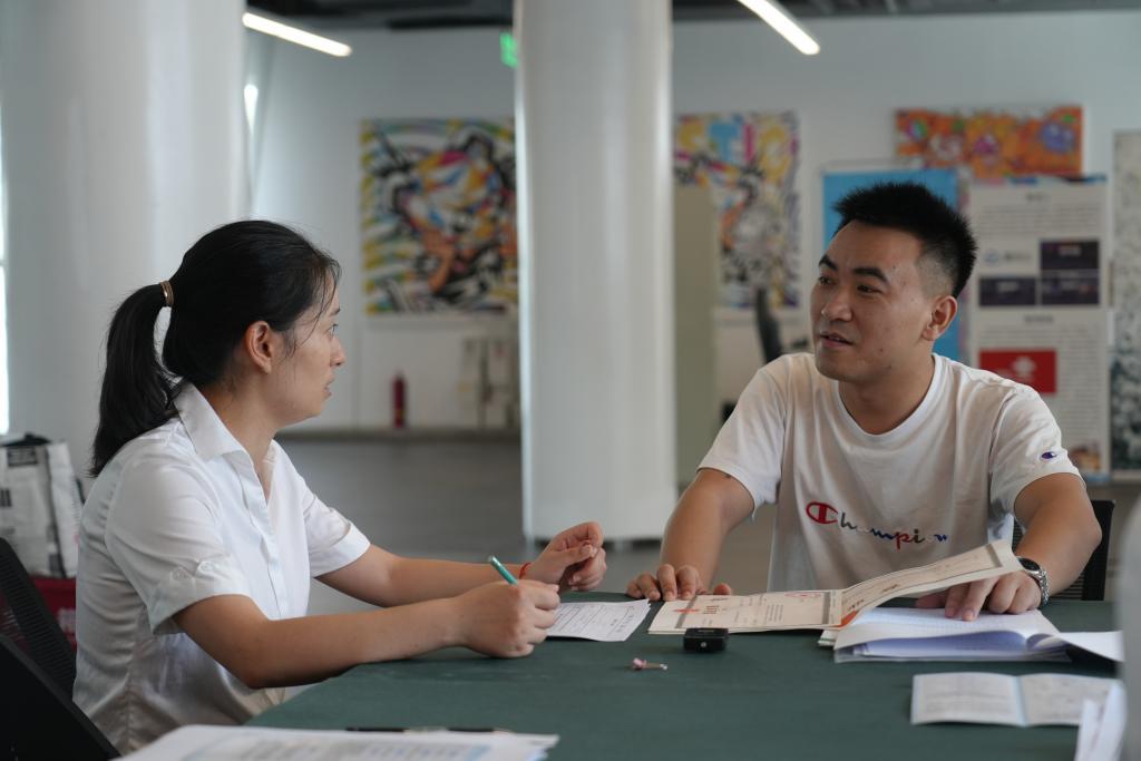 成都市成華區(qū)行政審批局在項(xiàng)目現(xiàn)場設(shè)立“流動(dòng)審批服務(wù)點(diǎn)”,為商戶辦理行政審批手續(xù)。(詹妮 攝)
