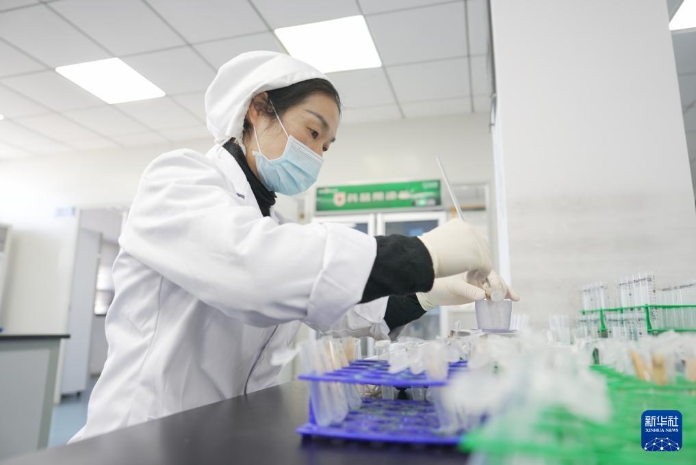 11月29日,在石門縣一家家禽加工企業(yè)實(shí)驗(yàn)室,工作人員對(duì)雞肉樣本進(jìn)行抽檢。
