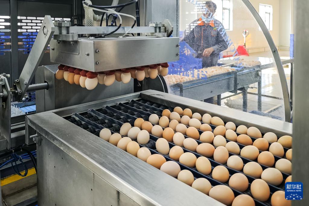11月29日,石門縣一家家禽加工企業(yè)碼蛋車間的真空吸蛋器在作業(yè)。