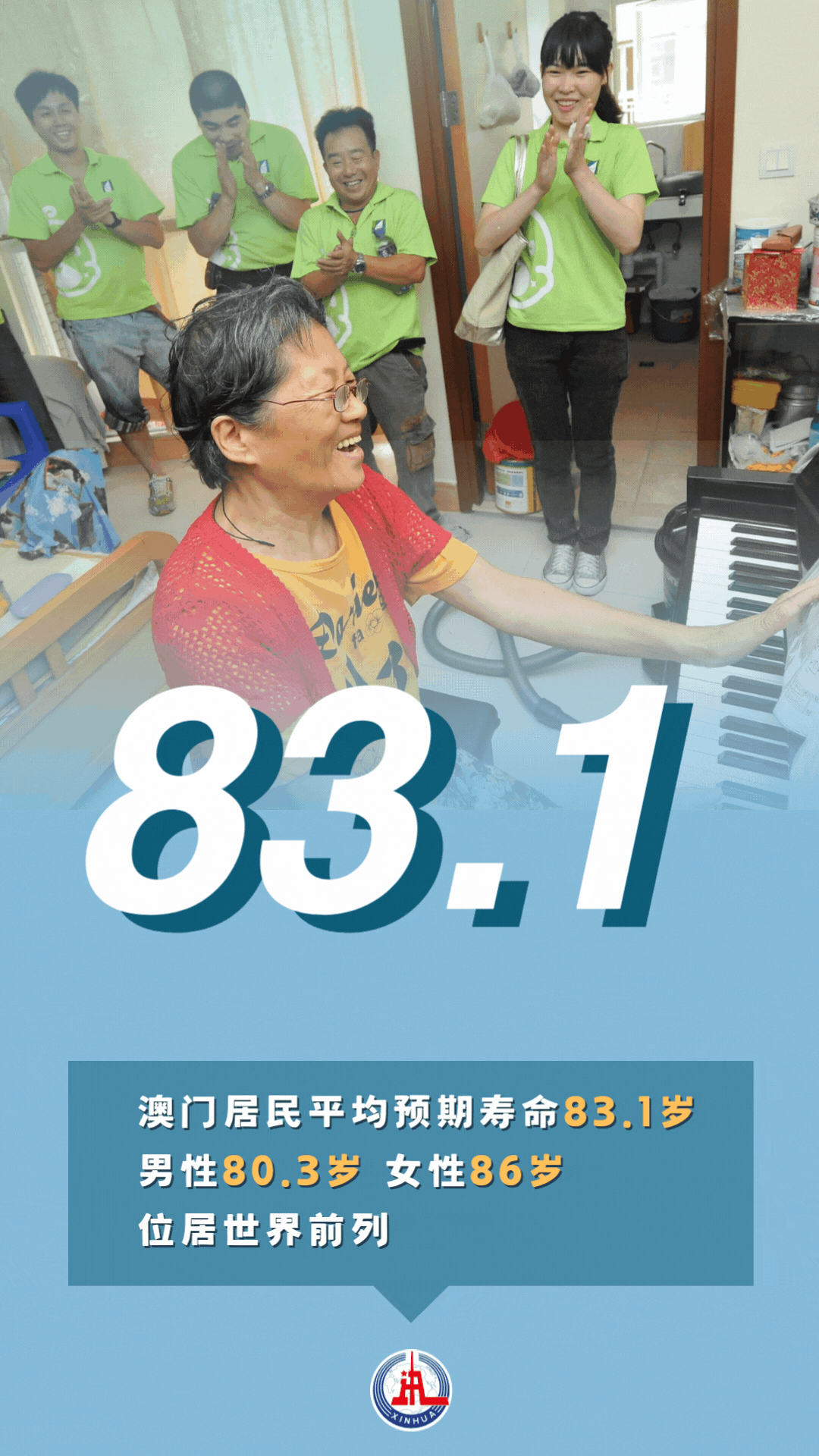 回歸祖國以來,澳門建立了涵蓋生命全周期、覆蓋生活各領域的民生保障體系,醫(yī)療保障水平顯著提升。澳門初級衛(wèi)生保健體系被世界衛(wèi)生組織評為“太平洋地區(qū)典范”。澳門居民平均預期壽命83.1歲,其中男性80.3歲、女性86歲,位居世界前列。