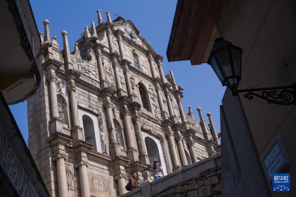 人們在澳門大三巴牌坊瀏覽(12月7日攝)。新華社發(fā)(張金加攝)