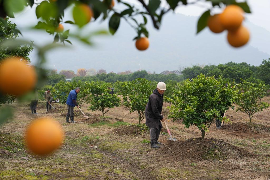 “我們施的是有機(jī)肥料,既能幫助橘樹根部生長,又能防凍,來年就能收獲更多果。”周春國說,在農(nóng)技專家指導(dǎo)下,他負(fù)責(zé)打理的橘樹產(chǎn)量越來越高,畝產(chǎn)達(dá)8000斤左右。