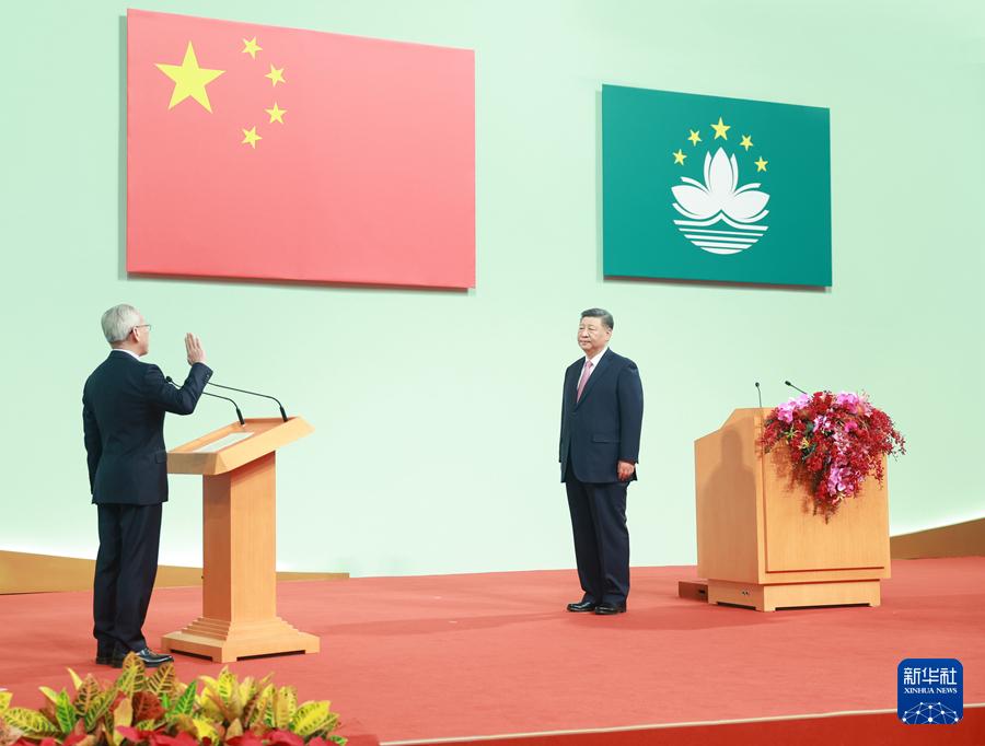 ??12月20日,慶祝澳門(mén)回歸祖國(guó)25周年大會(huì)暨澳門(mén)特別行政區(qū)第六屆政府就職典禮在澳門(mén)東亞運(yùn)動(dòng)會(huì)體育館隆重舉行。中共中央總書(shū)記、國(guó)家主席、中央軍委主席習(xí)近平出席并發(fā)表重要講話。這是習(xí)近平監(jiān)誓,澳門(mén)特別行政區(qū)第六任行政長(zhǎng)官岑浩輝宣誓就職。