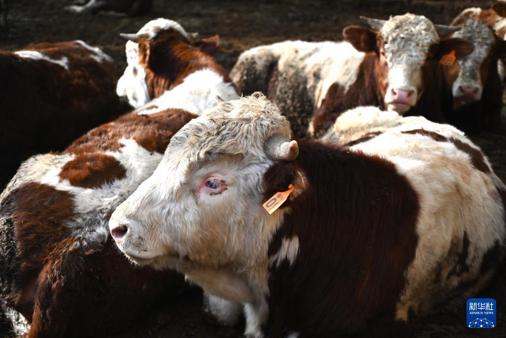 這是1月6日在寧夏固原市涇源縣一家養(yǎng)牛場(chǎng)拍攝的黃牛。