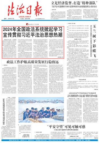 本報北京1月12日訊 記者蔡長春 全國政法系統(tǒng)堅持不懈用習(xí)近平新時代中國特色社會主義思想凝心鑄魂,2024年以來,持續(xù)深入學(xué)習(xí)宣傳貫徹習(xí)近平新時代中國特色社會主義思想特別是習(xí)近平法治思想,掀起學(xué)習(xí)宣傳貫徹習(xí)近平法治思想熱潮。