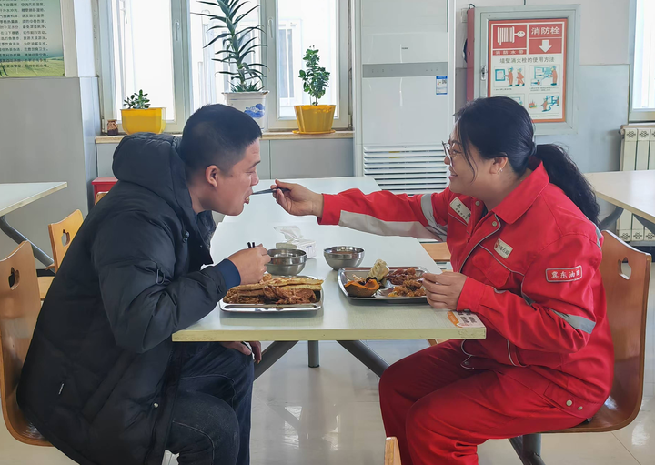 之前夫妻二人在南堡油田第五工區(qū)工作,但兩人工作地點之間也有約1個小時車程。徐春和所在的單井點平臺,需要24小時值守,所以他和班組5名同事采取一周一倒休的模式?!懊刻斐燥埗紱]有固定時間,生產(chǎn)忙的時候經(jīng)常一個月回不了家。”他說。