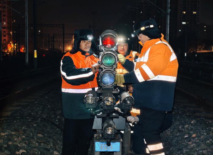 沈陽(yáng)鐵路局沈陽(yáng)電務(wù)段信號(hào)中修車(chē)間主任高巖和團(tuán)隊(duì)在檢修鐵路信號(hào)。劉詩(shī)林/攝