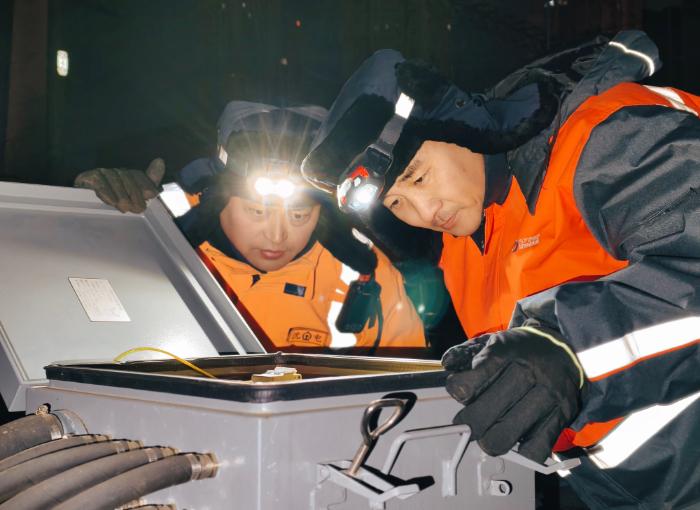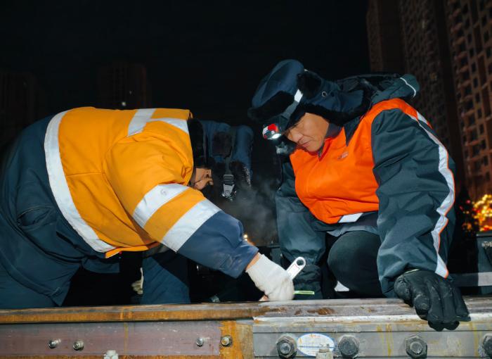 “天黑,大家注意腳下,防止滑倒,注意人身安全?!备邘r囑咐著工友,自己則一邊向前走,一邊觀察每一處設(shè)備外觀狀態(tài),走到138號(hào)道岔時(shí),他蹲下身子,從工具包里掏出扳手,開(kāi)始仔細(xì)地檢查每一處螺栓,發(fā)現(xiàn)一處關(guān)鍵螺栓有松動(dòng)跡象,他立即緊固好,呼出的熱氣在睫毛上凝結(jié)成冰碴,模糊了視線,他就趁著起身的間隙,用袖子匆匆擦一把。