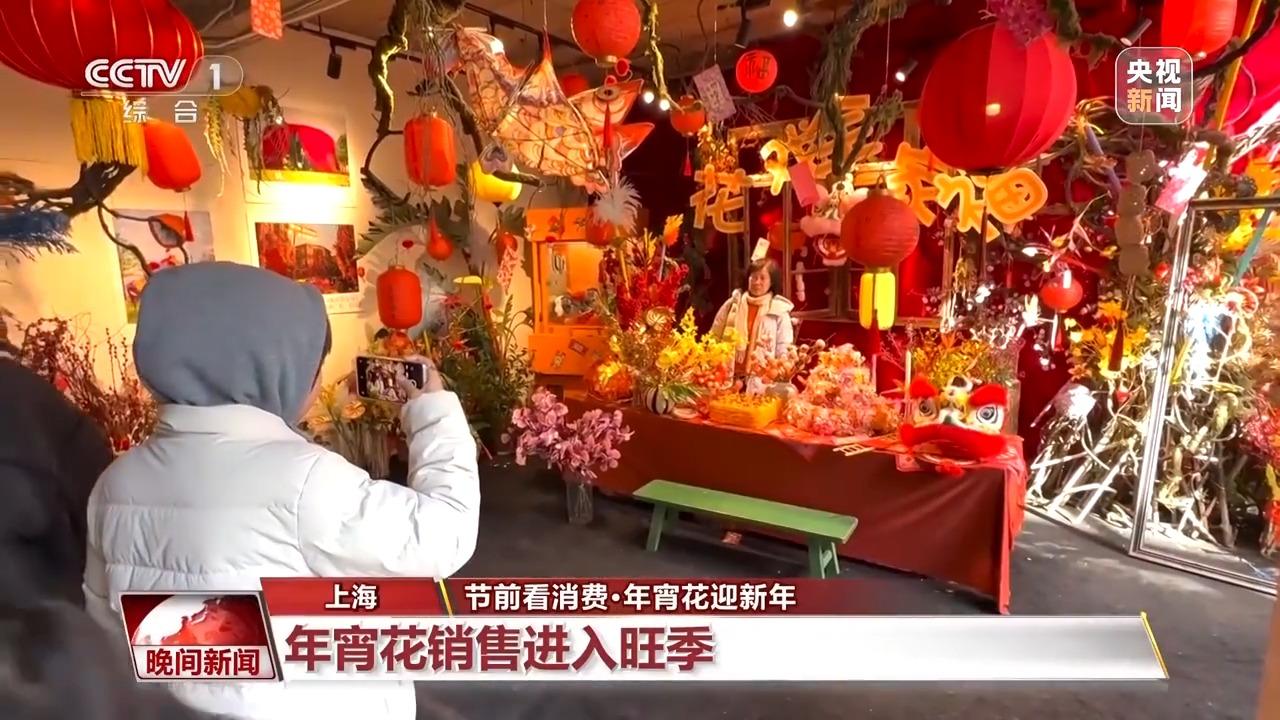 不少商家還在造型上下足了功夫,在鮮花上掛上“大吉大利”“平安喜樂”等祝福小卡片、精致小巧的紅燈籠、中國結(jié)等,寓意“把福抱回家”,深受消費者歡迎。