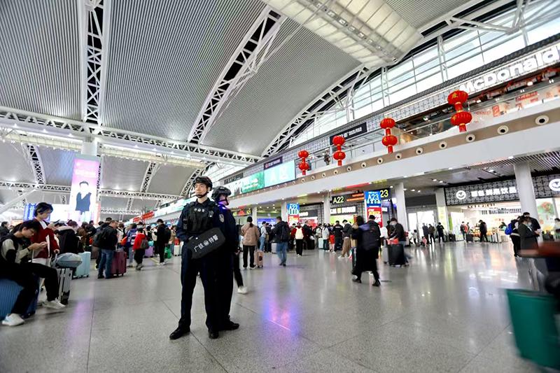 針對日前各大車站客流激增情況,廣州鐵路警方加強與鐵路客運部門聯(lián)系,及時掌握各大車站列車正晚點信息,組織500余名應急警力,梯次增援春運增開列車和廣州南站、廣州白云站、廣州站等重點車站,進一步加強對車站進站口、檢票口、安檢口以及電梯口等重點部位的治安秩序維護,同時持續(xù)對車站站區(qū)及周邊“代購車票”“帶客進站”等各類慣性治安問題進行嚴厲打擊。其中,在客流最大的廣州南站,廣鐵警方投入了近400名安保人員,并根據(jù)春運客流特點及時調(diào)整勤務模式,采取警便結合方式,在重點時段彈性上崗,立足候車室、售票廳、出站層三大重點區(qū)域,分小組、分時段、分區(qū)域不間斷加強站區(qū)治安防控打擊。據(jù)統(tǒng)計,自春運開始以來,廣鐵警方共查處易燃易爆、利鈍器等各類危險品2.6萬余起;偵破刑事案件3起,采取刑事強制措施3人;查處擾序等各類行政案件15起,其中行政拘留7人,其余人員均處以警告或罰款處罰。