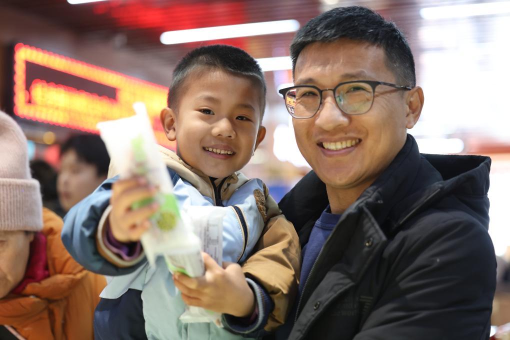 正在選購的李鴻超一家展示麻花。郝杰 攝(新華社發(fā))