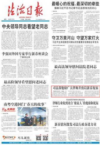 本報(bào)北京1月26日訊 記者趙婕 1月26日,司法部召開律師代表座談會(huì),聽(tīng)取對(duì)律師工作的意見(jiàn)建議,向全國(guó)廣大律師致以新春祝福,勉勵(lì)大家深入踐行習(xí)近平法治思想,做黨和人民滿意的好律師。黨組書記、部長(zhǎng)賀榮,黨組成員、副部長(zhǎng)王振江出席會(huì)議。