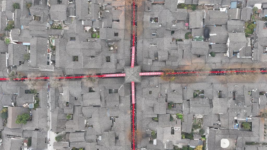充滿濃濃年味的閬中古城(無(wú)人機(jī)照片)。新華社記者 薛晨 攝