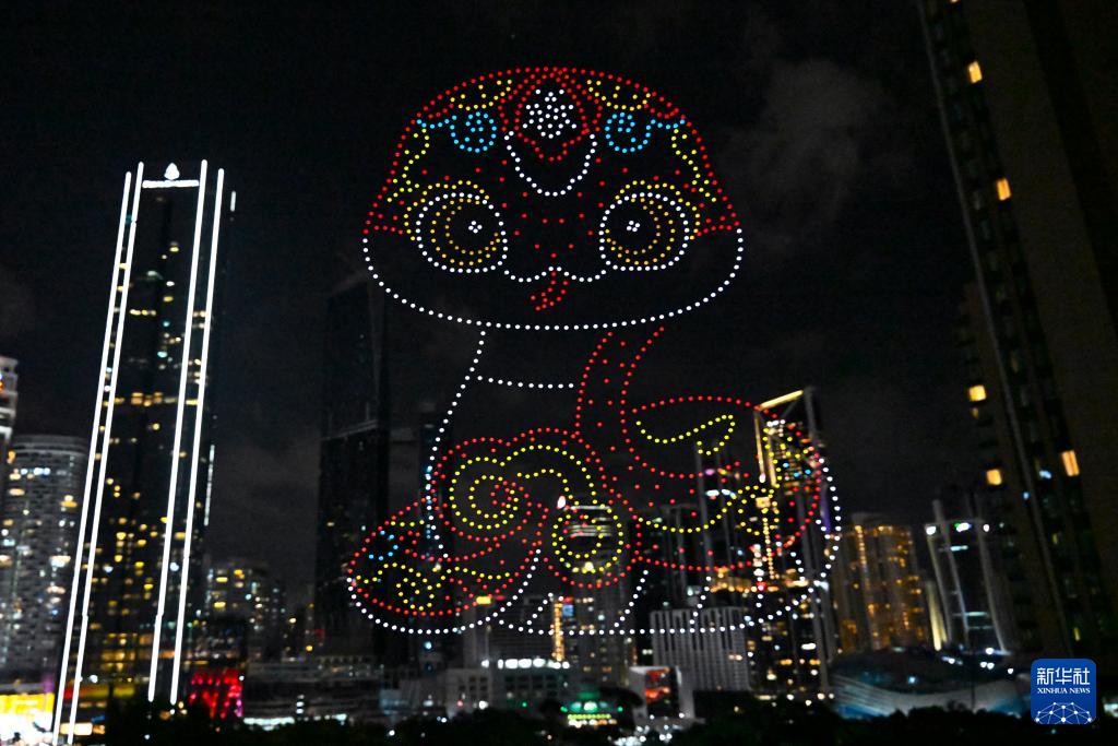 1月25日,在馬來西亞吉隆坡舉行的2025年“歡樂春節(jié)”全球啟動(dòng)儀式前,無人機(jī)展示蛇年主題圖案。