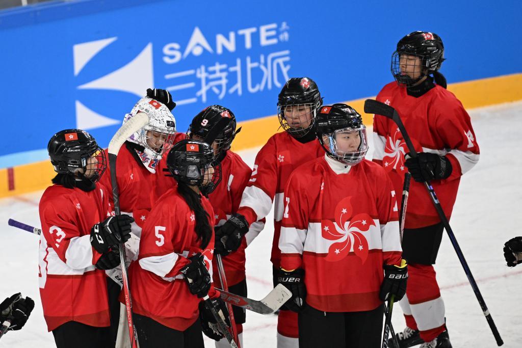 2月3日,中國香港冰球女隊球員在比賽結(jié)束后。新華社記者 陳振海 攝