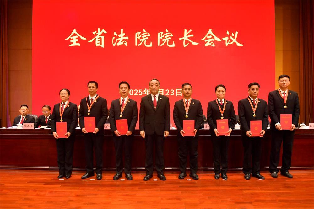 會上,傅信平為7位基層法院院長頒發(fā)了榮譽天平紀念章和證書。江西高院黨組副書記、副院長居國屏主持會議,黨組成員、政治部主任盛茵通報2024年全省法院獲得省部級以上表彰獎勵和通報表揚的集體和個人情況。3家中院和5家基層法院現(xiàn)場作交流發(fā)言,9家中院和6家基層法院作書面交流。