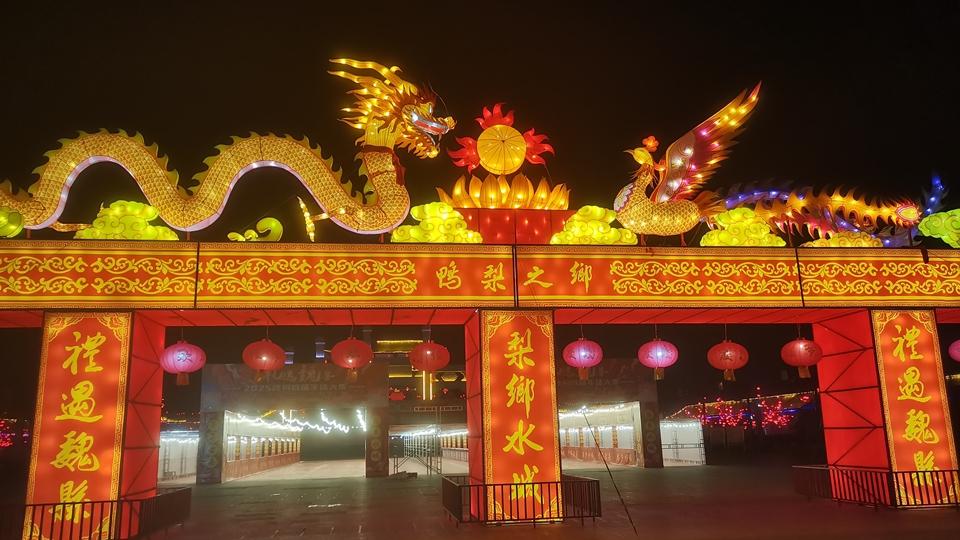 魏縣魏祠廣場布置的迎新春“禮遇魏縣”龍鳳呈祥華燈流光溢彩,喜迎蛇年春節(jié)。魏縣縣委宣傳部供圖(王德峰 攝)
