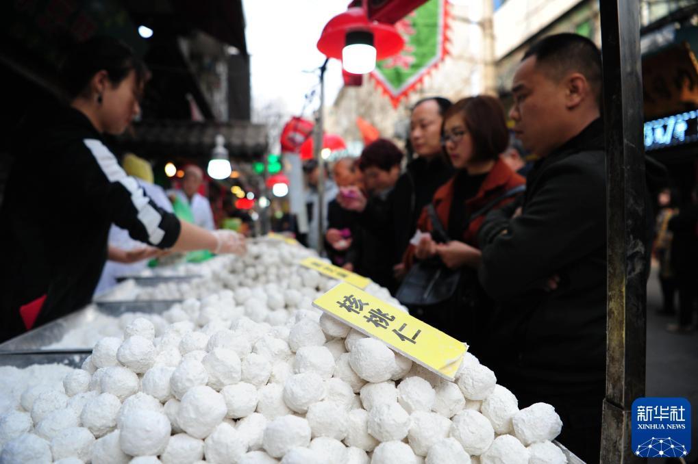 2018年3月1日,市民在西安市回民街一家店鋪外排隊購買元宵。新華社發(fā) 張博文 攝