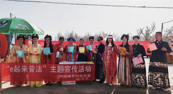 2024年4月新疆和田地委網(wǎng)信辦在和田縣桃花源開展“e起來普法”網(wǎng)絡(luò)安全宣傳活動