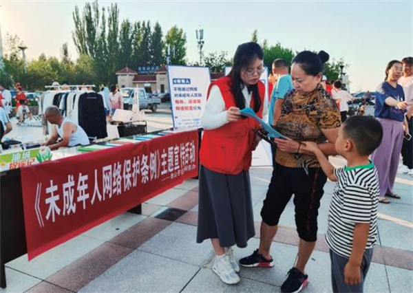 2024年7月克拉瑪依市獨山子區(qū)委網(wǎng)信辦在南廣場跳蚤市場舉辦《未成年人網(wǎng)絡(luò)保護條例》主題宣傳活動
