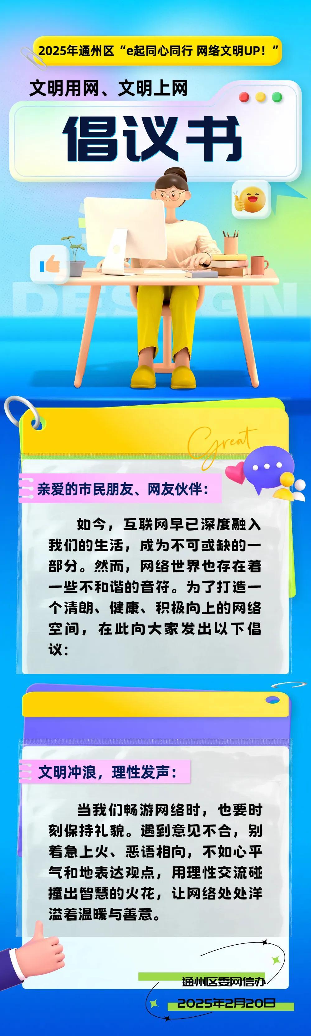 2025年通州區(qū)“e起同心同行 網(wǎng)絡(luò)文明UP!”文明用網(wǎng)、文明上網(wǎng)倡議書