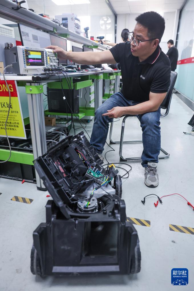 3月26日,在位于嘉興南湖區(qū)余新鎮(zhèn)的浙江亞特電器股份有限公司測試車間內(nèi),工作人員在對園林工具進(jìn)行測試。
