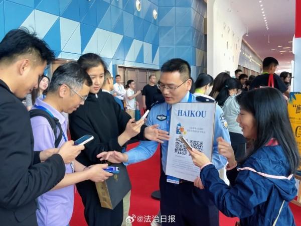 在第五屆中國國際消費品博覽會上,海南海口警方的“警‘茶’局”公益宣傳展區(qū)格外引人注目。在現(xiàn)場,只要參與交通安全知識問答、禁毒知識問答等普法活動,就可品嘗到印有文明交通標語的免費茶飲,收獲交警小熊、??诮竟械榷Y品,不少國內(nèi)外參展客商、市民游客融入其中,現(xiàn)場氛圍十分活躍。除此之外,現(xiàn)場還可觀摩仿真毒品模型、與民警面對面交流,深入了解法律知識,提高安全防范意識。創(chuàng)新宣傳,寓教于樂,這場盛會也因警方這樣的貼心守護更顯生動。