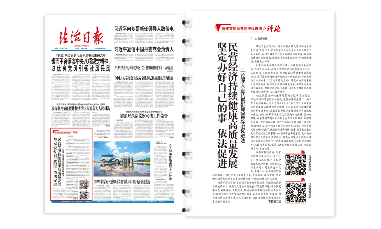 制定民營經(jīng)濟促進法是貫徹習近平法治思想、習近平經(jīng)濟思想的生動實踐,是貫徹落實黨的二十屆三中全會精神和習近平總書記2月17日在民營企業(yè)座談會上的重要講話精神的重大舉措,是社會主義市場經(jīng)濟建設(shè)的標志性事件,在我國民營經(jīng)濟發(fā)展歷程中具有里程碑意義。當前,世界百年未有之大變局加速演進,受外部環(huán)境、政策落實不到位等內(nèi)外多重因素交織影響,民營經(jīng)濟面臨一些困難和挑戰(zhàn)。習近平總書記多次強調(diào),“保持定力,增強信心,集中精力辦好自己的事情,是我們應(yīng)對各種風險挑戰(zhàn)的關(guān)鍵”。促進民營經(jīng)濟持續(xù)、健康、高質(zhì)量發(fā)展正是當下辦好自己的事情的一個非常重要的方面。黨中央決定制定出臺民營經(jīng)濟促進法,將黨和國家關(guān)于民營經(jīng)濟的方針政策和實踐中行之有效的經(jīng)驗做法確定為法律制度,鞏固改革成果,依法促進民營經(jīng)濟發(fā)展壯大,可謂正當其時、十分必要。