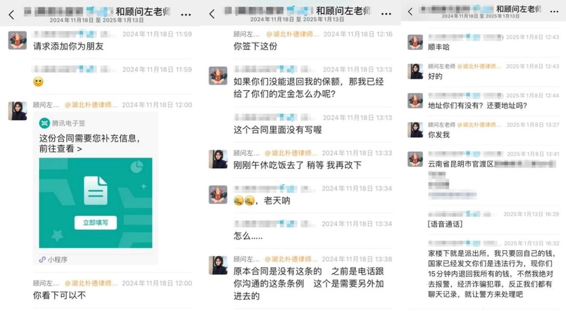 2024年12月,江西客戶S女士在網上看到一則“代理退?!钡膹V告,聲稱“全額退保,不成功不收費”。因當時經濟壓力較大,并且缺乏對黑產中介的了解,S女士接觸了該所謂的“專業(yè)代理機構”。在對方的誘導下,客戶以“銷售誤導”等虛假理由投訴保險公司,要求全額退保,同時還向對方支付了4800元作為“定金”。然而后續(xù)幾天,S女士始終沒有等到對方的消息。