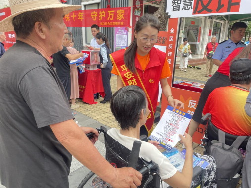 活動(dòng)當(dāng)天,現(xiàn)場洋溢著熱烈的紅色氛圍,精彩的文藝表演輪番上演,吸引了眾多居民駐足觀看。平安產(chǎn)險(xiǎn)海南分公司與平安銀行??诜中械闹驹感麄魅藛T在活動(dòng)現(xiàn)場特別搭建了“智慧反詐 平安守護(hù)”宣傳展臺(tái),通過擺放反欺詐、防范非法集資等宣傳折頁,向過往群眾普及金融安全知識(shí)?;顒?dòng)還邀請(qǐng)到了轄區(qū)民警,為老年人講解防范詐騙的實(shí)用技巧,幫助他們提高警惕,遠(yuǎn)離詐騙風(fēng)險(xiǎn)。