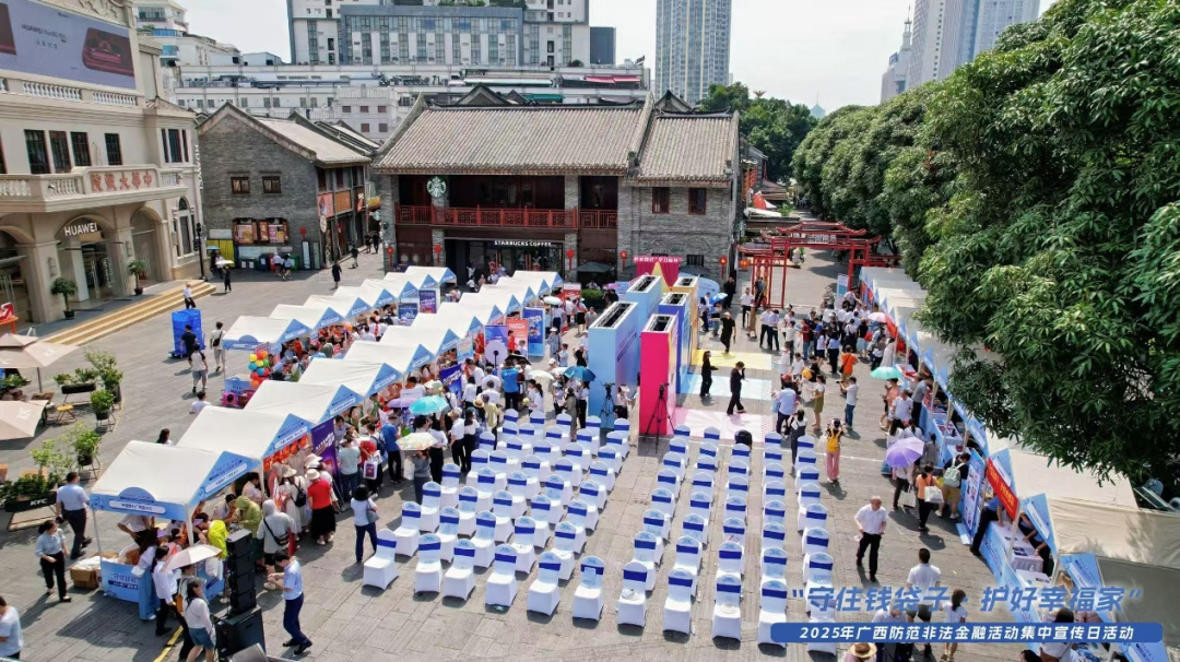 6月15日,廣西金融監(jiān)管局聯(lián)合中共廣西壯族自治區(qū)委員會(huì)金融委員會(huì)辦公室在南寧市三街兩巷歷史文化街區(qū)主辦2025年廣西防范非法金融活動(dòng)集中宣傳日活動(dòng),聯(lián)合法院、檢察院、公安、市場(chǎng)監(jiān)管、民政等多家政府機(jī)關(guān)單位,以多維度、多視角協(xié)同構(gòu)建防非宣傳新格局。活動(dòng)以多種形式深入社區(qū)、校園、鄉(xiāng)村、商圈、工廠等開展金融知識(shí)宣教,單場(chǎng)直播瀏覽量突破10.7萬人次。