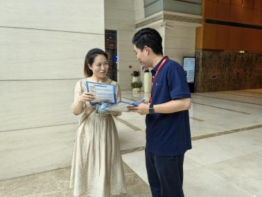 保險進企業(yè):走進企業(yè)大樓,為大樓內(nèi)來往企業(yè)員工介紹“7.8全國公眾保險宣傳日”活動,科普金融反詐知識,提醒大家關注好自身權(quán)益,避免網(wǎng)絡電信詐騙。