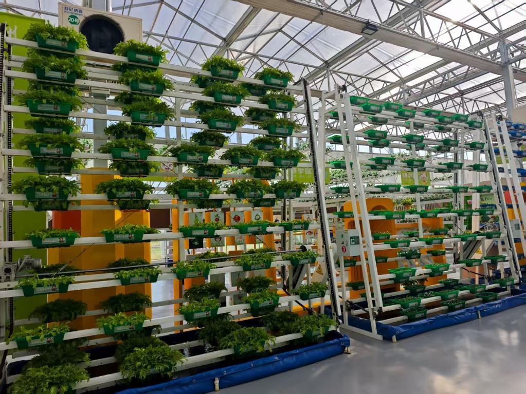 冀州現(xiàn)代農(nóng)業(yè)融合創(chuàng)新基地的旋轉(zhuǎn)種植塔。新華社記者 董笑坤 攝