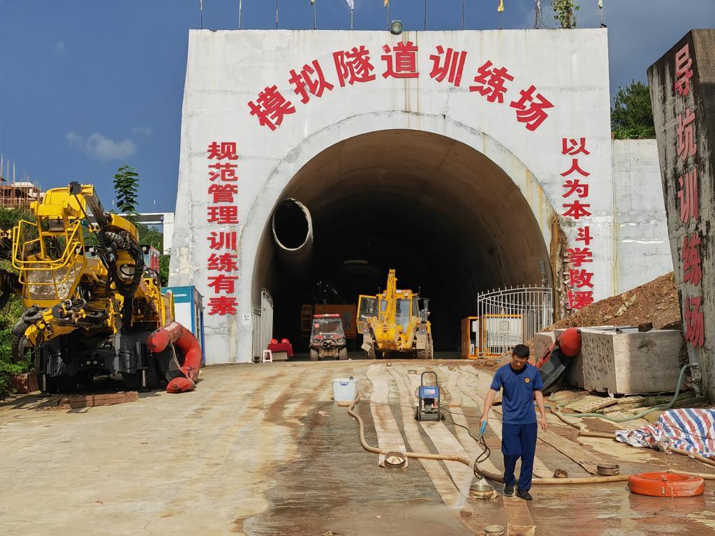 大口徑水平救援鉆機、大型全地形水陸兩棲車、多功能搶險車……走進國家隧道應(yīng)急救援中鐵五局貴陽隊的訓(xùn)練基地,各種救援設(shè)備映入眼簾,一個隊員正在用高壓水槍沖洗著一條條排水水帶。