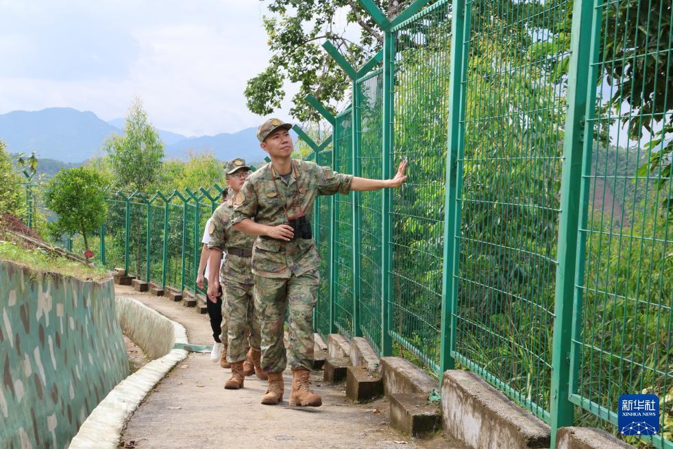 廣西軍區(qū)某部謝亮(前一)組織軍地人員巡察邊境國防設(shè)施(資料照片)。 新華社發(fā)(梁凱昌攝)