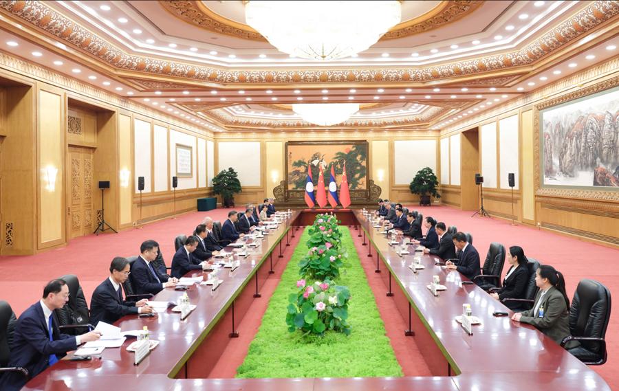 習(xí)近平強(qiáng)調(diào),當(dāng)前國際和地區(qū)形勢(shì)發(fā)生復(fù)雜深刻變化,雙方要以長(zhǎng)遠(yuǎn)眼光和戰(zhàn)略思維看待和把握中老關(guān)系,在涉及彼此核心利益和重大關(guān)切問題上堅(jiān)定相互支持。要以明年兩國建交65周年為契機(jī),謀劃開展好各領(lǐng)域交往。中方愿同老方深化治黨治國經(jīng)驗(yàn)交流,支持老撾人民革命黨籌備和開好十二大。要以中老鐵路運(yùn)營(yíng)和沿線開發(fā)為抓手,持續(xù)拓展“黃金大通道”輻射帶動(dòng)效應(yīng),推動(dòng)重點(diǎn)項(xiàng)目提質(zhì)升級(jí)。要深化防務(wù)、執(zhí)法安全等合作,對(duì)跨境賭博、電信網(wǎng)絡(luò)詐騙犯罪等持續(xù)高壓嚴(yán)打。中方祝賀老撾成為上海合作組織對(duì)話伙伴,愿同老方在中國東盟合作、瀾湄合作、東亞峰會(huì)等地區(qū)機(jī)制下深化協(xié)調(diào)和配合,促進(jìn)地區(qū)和平與發(fā)展。