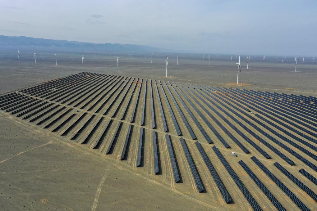 一望無垠的新疆戈壁上,逾百米高風機的葉片緩緩轉(zhuǎn)動,連綿的光伏板在陽光下“漾”起粼粼光紋,超低排放的火電機組平穩(wěn)運轉(zhuǎn),與風光能源協(xié)同運行。