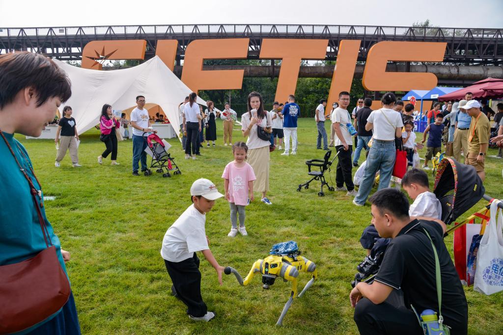 小朋友與具身智能“AI小螞ROBOT”互動。新華社記者 徐欽 攝
