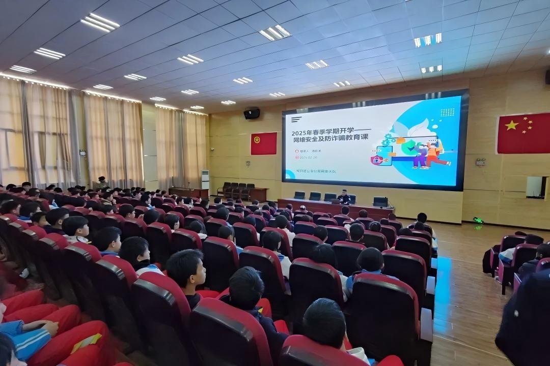 2025年春季學(xué)期伊始,貴陽市公安局經(jīng)開分局網(wǎng)安大隊民警化身“網(wǎng)絡(luò)導(dǎo)師”,帶著滿滿“干貨”走進花溪區(qū)第四實驗學(xué)校,為300余名同學(xué)帶來一堂“沉浸式”網(wǎng)絡(luò)安全課。面對民警拋出的“靈魂拷問”,同學(xué)們爭相搶答,把安全上網(wǎng)的“金鑰匙”帶回了家。