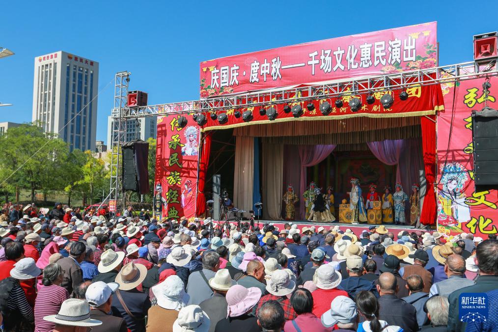 9月24日,在甘肅省平涼市綠地廣場,演員在“慶國慶·度中秋”戲曲文化惠民演出現場表演。