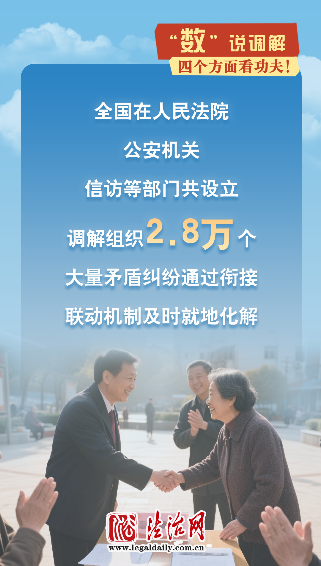 “十四五”期間,司法部堅(jiān)持和發(fā)展新時(shí)代“楓橋經(jīng)驗(yàn)”,充分發(fā)揮調(diào)解的職能作用,在機(jī)制全、領(lǐng)域廣、隊(duì)伍強(qiáng)、效果實(shí)四個(gè)方面下功夫,大力加強(qiáng)矛盾糾紛的排查化解,切實(shí)保障群眾合法權(quán)益,維護(hù)社會(huì)和諧穩(wěn)定。