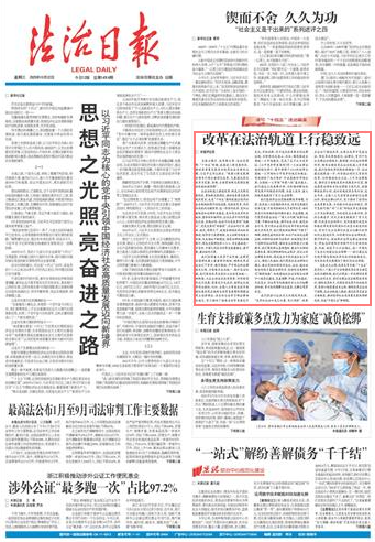 發(fā)展永無(wú)止境,改革未有窮期?!笆逦濉笔屈h的二十屆三中全會(huì)部署改革任務(wù)全面完成的關(guān)鍵時(shí)期,我們必須進(jìn)一步處理好改革和法治的關(guān)系,更好發(fā)揮法治在凝聚改革共識(shí)、排除改革阻力、鞏固改革成果中的積極作用,堅(jiān)持以制度建設(shè)為主線,確保改革在法治下破題、在法治軌道上推進(jìn),通過(guò)改革完善各方面制度,推動(dòng)經(jīng)濟(jì)社會(huì)高質(zhì)量發(fā)展取得新成效,創(chuàng)造“中國(guó)之治”新輝煌。