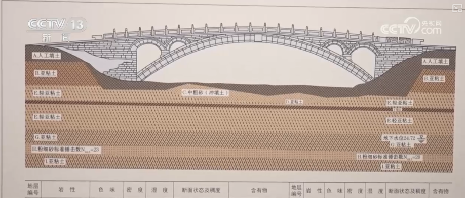趙縣博物館館長(zhǎng)李坤紅介紹,趙縣本地的天然土土層是輕亞粘土第四紀(jì)沖積層,每平方米承載力34噸,選址科學(xué),1400年了,趙州橋下沉非常少,所以說(shuō)它是一座千年不墜橋。