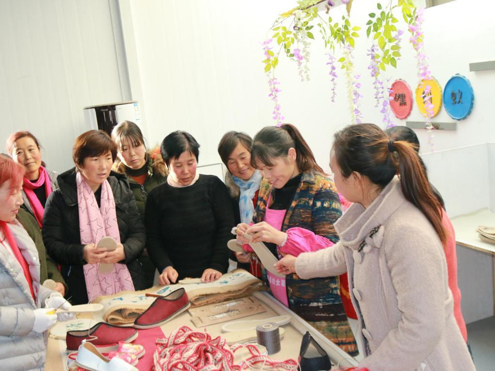 在當(dāng)?shù)卣闹С窒?,牛君俊成立麻鞋非遺工坊,聯(lián)合甘谷縣人力資源和社會(huì)保障局、農(nóng)業(yè)農(nóng)村局、婦聯(lián)等部門免費(fèi)開(kāi)展麻鞋制作培訓(xùn)?!?015年至今,我們累計(jì)培訓(xùn)了1萬(wàn)多人次,我們公司吸納的留守婦女就有3000多人?!迸>≌f(shuō)。