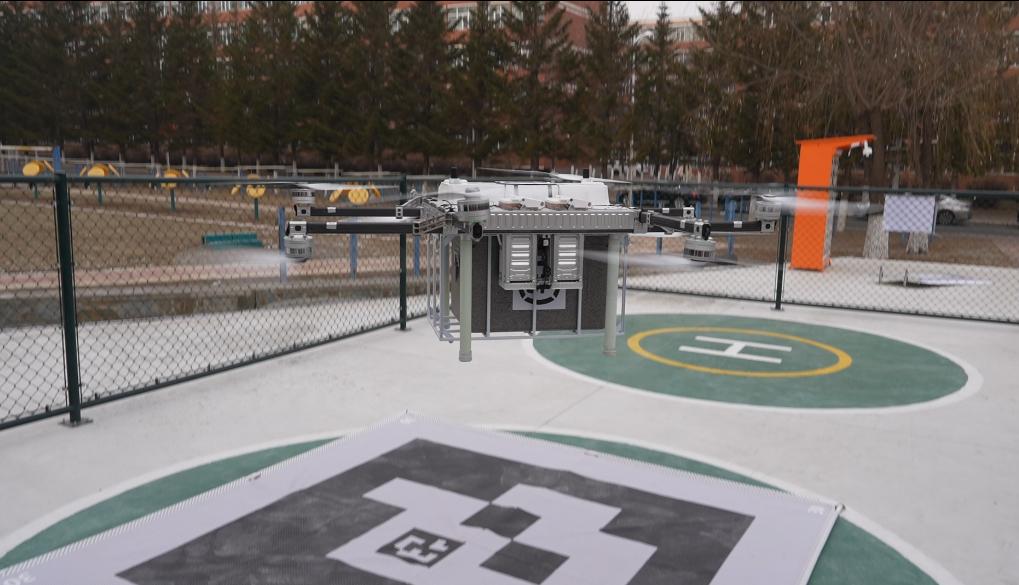 12月10日,一條高校低空物流配送航線在東北師范大學凈月校區(qū)正式投入運營。(受訪者供圖)