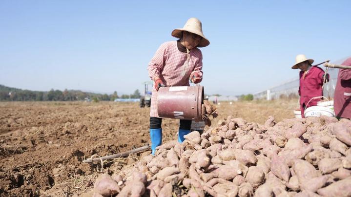 江西省吉安市永豐縣佐龍鄉(xiāng)的甘薯產(chǎn)業(yè)基地喜獲豐收。(劉菲菲 攝)