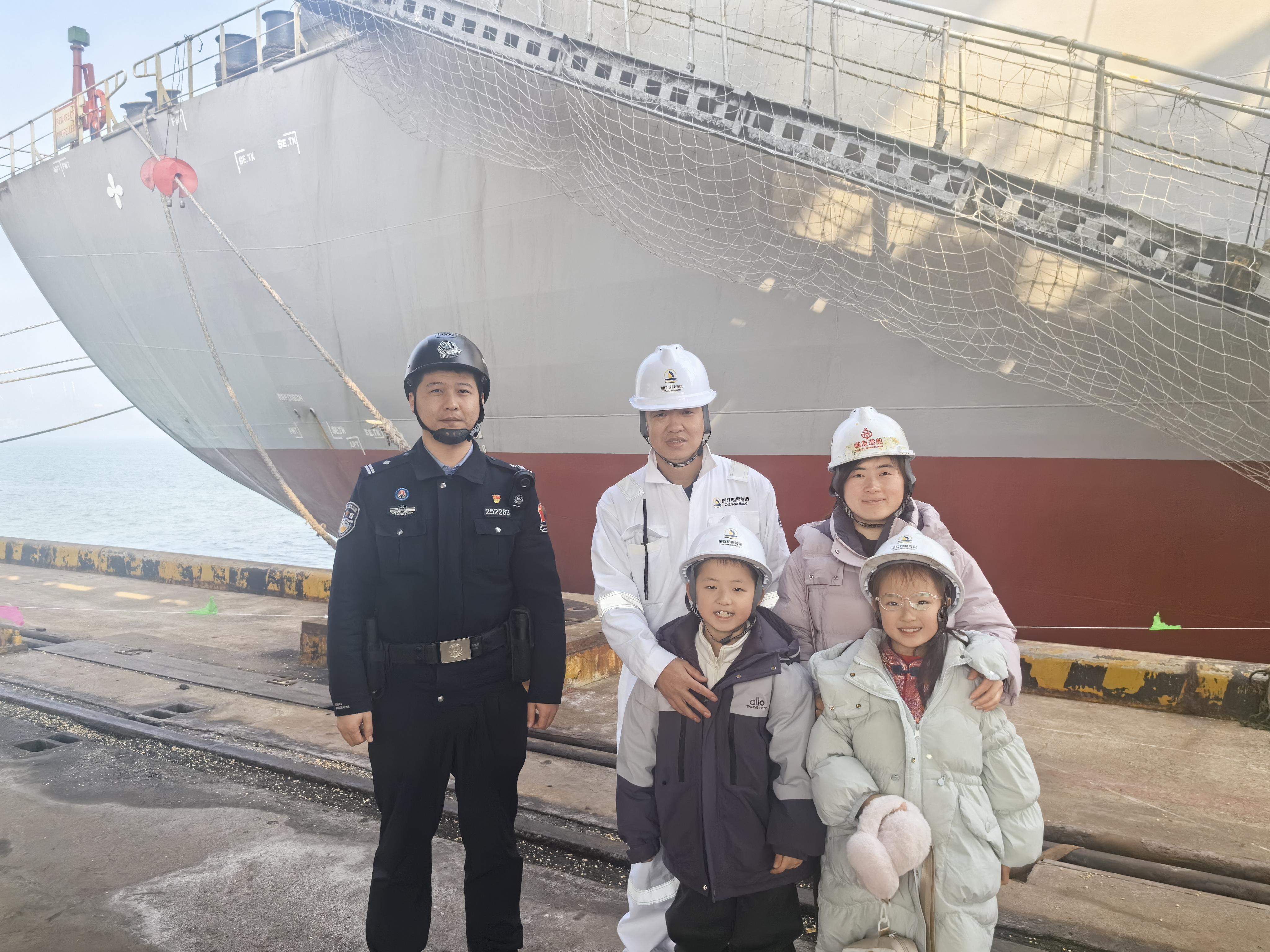 同一時刻,詹偉的愛人吳晉麗牽著一雙8歲的兒女,剛剛走出日照高鐵站。詹偉不久后將隨船遠航非洲,這個春節(jié),他注定要在茫茫大海上度過。得知船舶將在日照港短暫???,吳晉麗沒有絲毫猶豫,帶著孩子跨越千里趕來,只為能與家人見上一面,道一聲新春祝福,赴一場團圓之約。