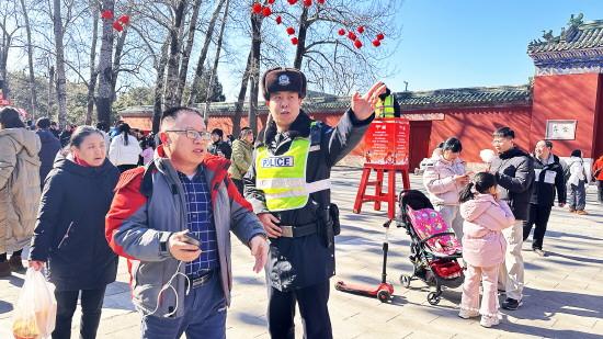年味最濃處,警心守護(hù)時(shí)。地壇廟會(huì)游人如織,紅墻黃瓦交映間,鑼鼓聲、歡笑聲、叫賣聲匯成一幅新春盛景。而在這喜慶背后、熙攘之中,總有一抹藏藍(lán)身影穿梭往來(lái)、執(zhí)著堅(jiān)守,成為節(jié)日里最堅(jiān)實(shí)的平安底色。