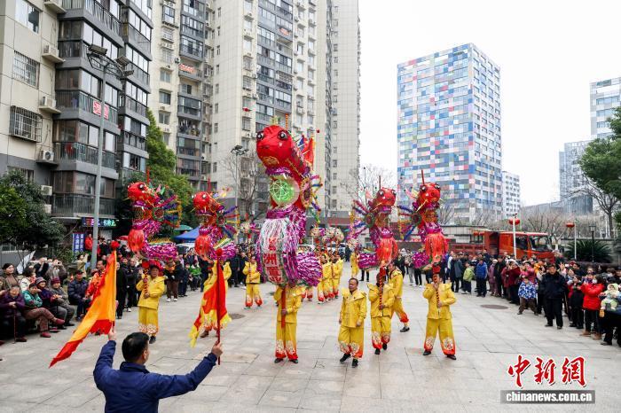 湖北武漢:千年高龍進(jìn)社區(qū) 昂首起舞迎祥瑞